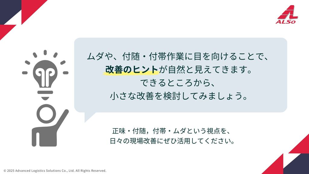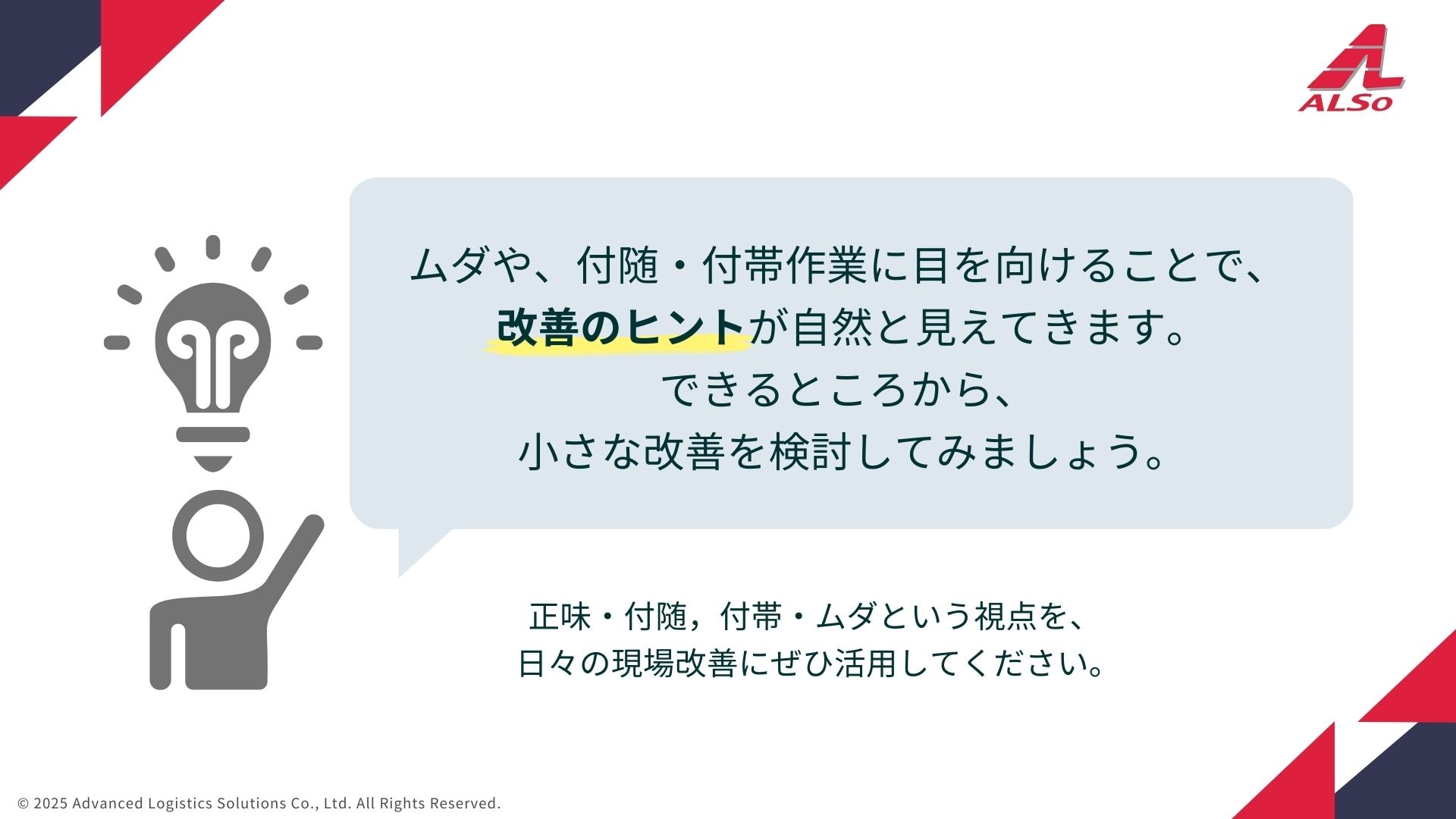 物流現場のムダを「正味・付随・付帯」に分けて、改善ポイントを見える化するための実践ガイドです。